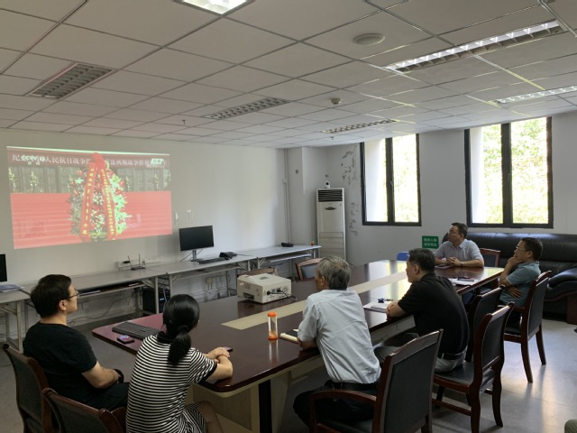9月3日上午9时50分,在行政楼3楼会议室,机关党支部二支部组织全体党员同志集中观看了抗战胜利纪念日敬献花篮仪式直播。